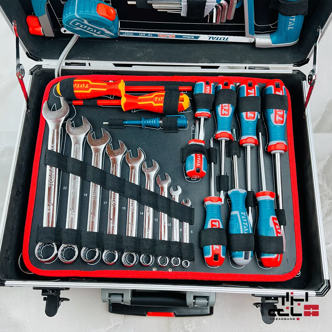 نظم در محیط کارگاه و در اختیار داشتن تمامی تجهیزات مورد نیاز در یک فضای واحد، اصلیترین تفاوت میان یک استادکار حرفهای و یک آماتور است. در اختیار داشتن یک مجموعه ابزار کامل که تمامی جنبههای مکانیکی، الکتریکی و تاسیساتی را پوشش دهد، نه تنها سرعت اجرای پروژهها را بالا میبرد، بلکه هزینههای جانبی خرید جداگانه قطعات را نیز به طور کامل حذف میکند. این پکیج جامع که از تولیدات تراز اول توتال به شمار میرود، با بهرهگیری از فولاد کروم وانادیوم در تمامی قطعات فلزی، استحکام و مقاومت در برابر فرسایش و زنگزدگی را به بالاترین سطح ممکن رسانده است. تمامی انبرهای متنوع موجود در این کیف، از جمله سیملختکن و انبر پمپی، دارای دستههایی با طراحی ارگونومیک و متریال ضدلغزش هستند تا تسلط کاربر در حین عملیاتهای پیچیده فنی به خوبی حفظ شود.