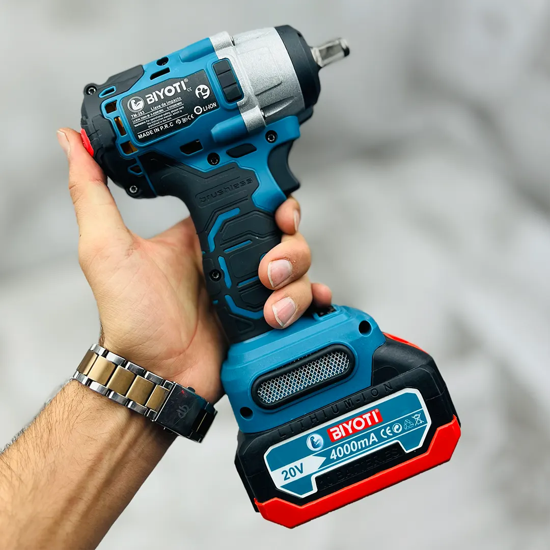 عضو اول این مجموعه، یک بکس شارژی قدرتمند با موتور براشلس (Brushless) است. این موتور پیشرفته، قدرت و گشتاور فوقالعادهای را برای باز و بسته کردن پیچها، به خصوص پیچهای چرخ خودرو، فراهم میکند. دیگر نیازی به صرف نیروی زیاد و استفاده از آچارهای دستی نیست؛ این بکس شارژی: