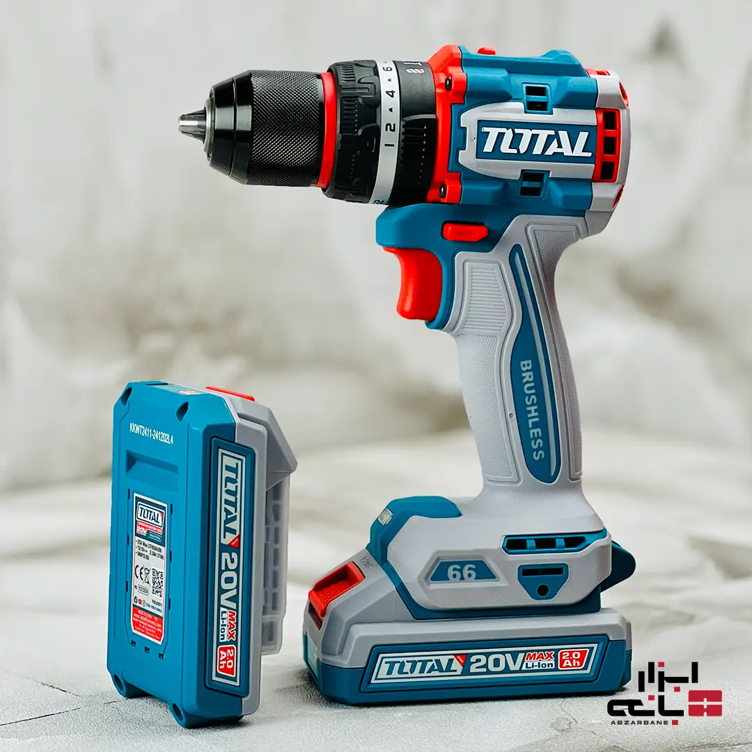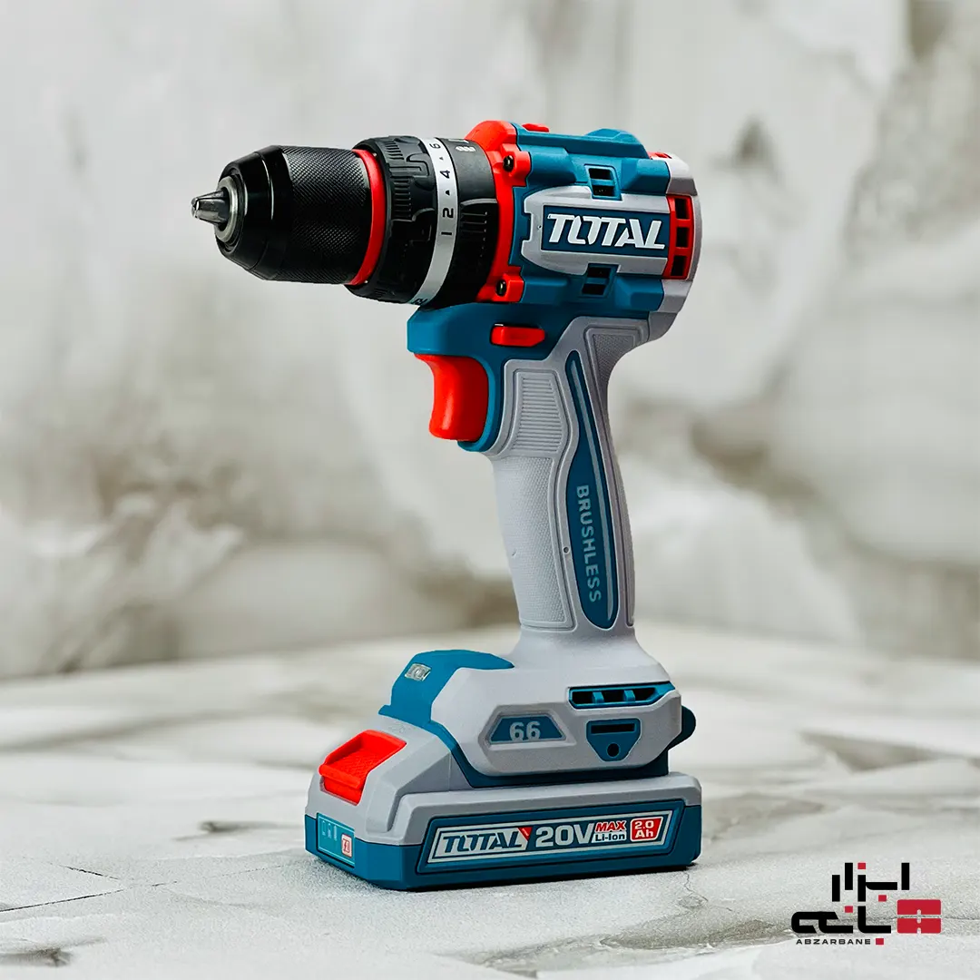 برای حرفهایها، ابزار فقط یک وسیله نیست؛ بلکه شریک کاری آنهاست. دریل شارژی چکشی براشلس توتال (TOTAL) مدل TIDLI20668 که با افتخار در فروشگاه اینترنتی ابزارآلات ابزاربانه عرضه میشود، دقیقاً همان شریک کاری قدرتمند، هوشمند و خستگیناپذیری است که هر متخصصی به آن نیاز دارد. این ابزار شارژی که عضوی از خانواده حرفهای P20S توتال است، با ترکیب موتور براشلس، گشتاور خیرهکننده 66 نیوتنمتر، نرخ ضربه 30,000 و یک مجموعه کامل 47 عددی از لوازم جانبی، یک راهکار جامع برای تمام نیازهای سوراخکاری، پیچکاری و سوراخکاری چکشی است.